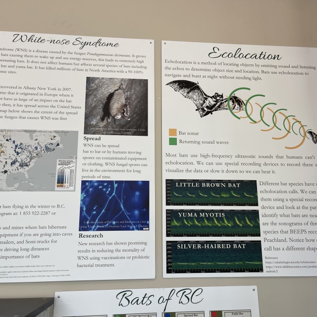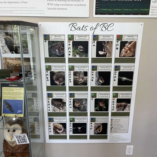 The Bat Education and Ecological Protection Society (BEEPS) in Peachland raises awareness about the local bat colony inhabiting the attic of the Peachland Historic School. They offer live footage of bat activity through a BatCam and host educational programs, including the annual International Bat Week.
