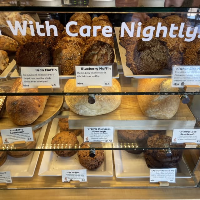 Bliss Bakery and Bistro offers a spot to enjoy delicious treats and hearty meals with a stunning lakeside view. Known for its freshly baked goods, Bliss Bakery presents an array of pastries, breads, and desserts, all crafted with care using high-quality ingredients. Their breakfast menu features unique options like eggs, benedict sandwiches, and chorizo breakfast biscuits, while lunch includes savoury soups, wraps, croissants, and gourmet sandwiches. The bistro also caters to dietary preferences with gluten-free and vegan choices, ensuring everyone can find something delightful.